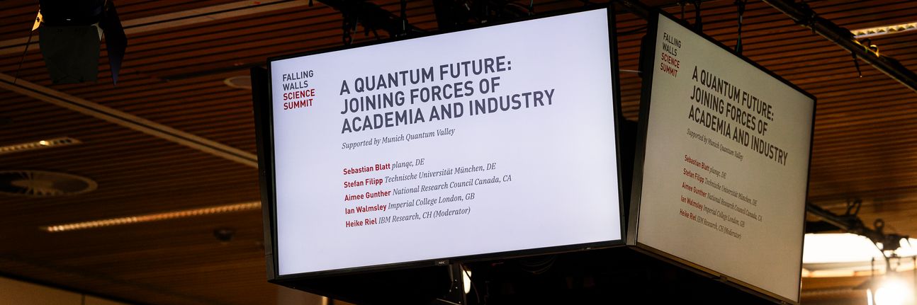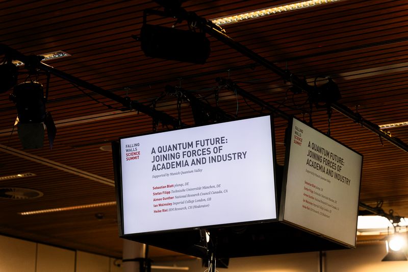 Auf dem Falling Walls Science Summit in Berlin Anfang November brachte die dynamische Podiumsdiskussion von MQV mit dem Titel „A Quantum Future: Joining Forces of Academia and Industry” Experten für Quanteninnovation und -technologie zusammen. Heike Riel von IBM moderierte die Diskussion, an der Sebastian Blatt, Mitbegründer und CTO von planqc, sowie Aimee K. Gunther vom National Research Council of Canada, Ian Walmsley vom Imperial College London und Stefan Filipp von MQV teilnahmen.