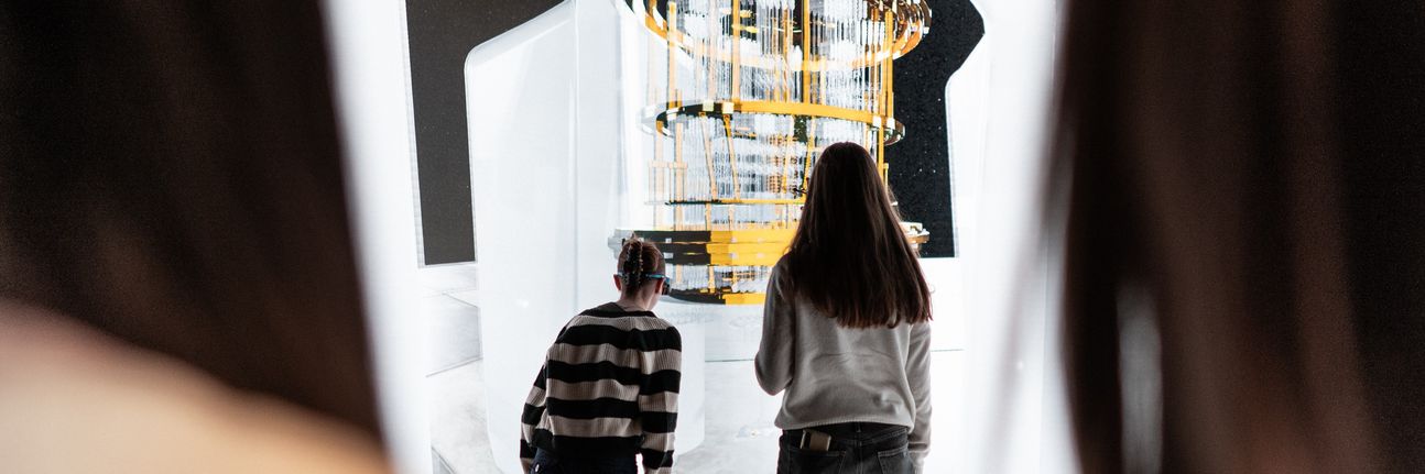 In der zweiten Jahreshälfte lud das MQV Besucher:innen in die neuen Räumlichkeiten des Halbleiterlabors der Max-Planck-Gesellschaft ein. Dessen Leiterin Jelena Nincovic gab einen Einblick in die Entwicklung präzisester Halbleitertechnologien und die Arbeit im Reinraum, der aufgrund der hohen Reinheitsklasse mit hohem Aufwand nahezu komplett partikelfrei gehalten wird und daher von den Gästen virtuell besichtigt wurde. Wie Forschende einzelne Lichtteilchen auf Knopfdruck erzeugen, erklärte Prof. Jonathan Finley den Besucher:innen des Walter-Schottky-Instituts. Diese konnten dann direkt live erleben, wie empfindlich solche Experimente sein können, denn allein die erhöhte Raumtemperatur durch die anwesenden Gäste verhinderte die Durchführung – ein authentischer Eindruck von Forschungsalltag. Am Fraunhofer-Institut für Kognitive Systeme wird auf einer weiteren Ebene an Quantencomputing geforscht: hier konnten Besucher:innen mehr über die möglichen Anwendungen von Quantencomputern erfahren, Quantenalgorithmen kennenlernen und mit einer Applikation selbst kleine Quantenschaltkreise bauen. Zurück zur Hardware-Entwicklung ging es bei der Veranstaltung am Walther-Meißner-Institut der BAdW, wo Quantensysteme bei tiefsten Temperaturen erforscht werden und insbesondere die für das supraleitende Quantencomputing benötigten, golden funkelnden Kryostaten die Gäste beeindruckten. Ebenso beeindruckt waren die Besucher:innen von den riesigen Maschinen und Serverschränken im Leibniz-Rechenzentrum, wo unter anderem die Integration von Quantencomputern in Höchstleistungsrechenzentren erforscht und erprobt wird. „Sowas bekommt man ja sonst nicht zu sehen“, freute sich ein Teilnehmer. Zum Jahresabschluss öffnete schließlich noch das German Space Operations Center des Deutschen Zentrums für Luft- und Raumfahrt in Oberpfaffenhofen seine Türen und ließ den Blick der Gäste in die Ferne schweifen. Metaphorisch bei einem Vortrag über den potenziellen Einsatz von Quantentechnologien in der Raumfahrt und ganz konkret auf den Bildschirmen in den Kontrollräumen, die live die Arbeit von Astronauten im Columbus-Modul der Internationalen Raumstation ISS übertrugen.