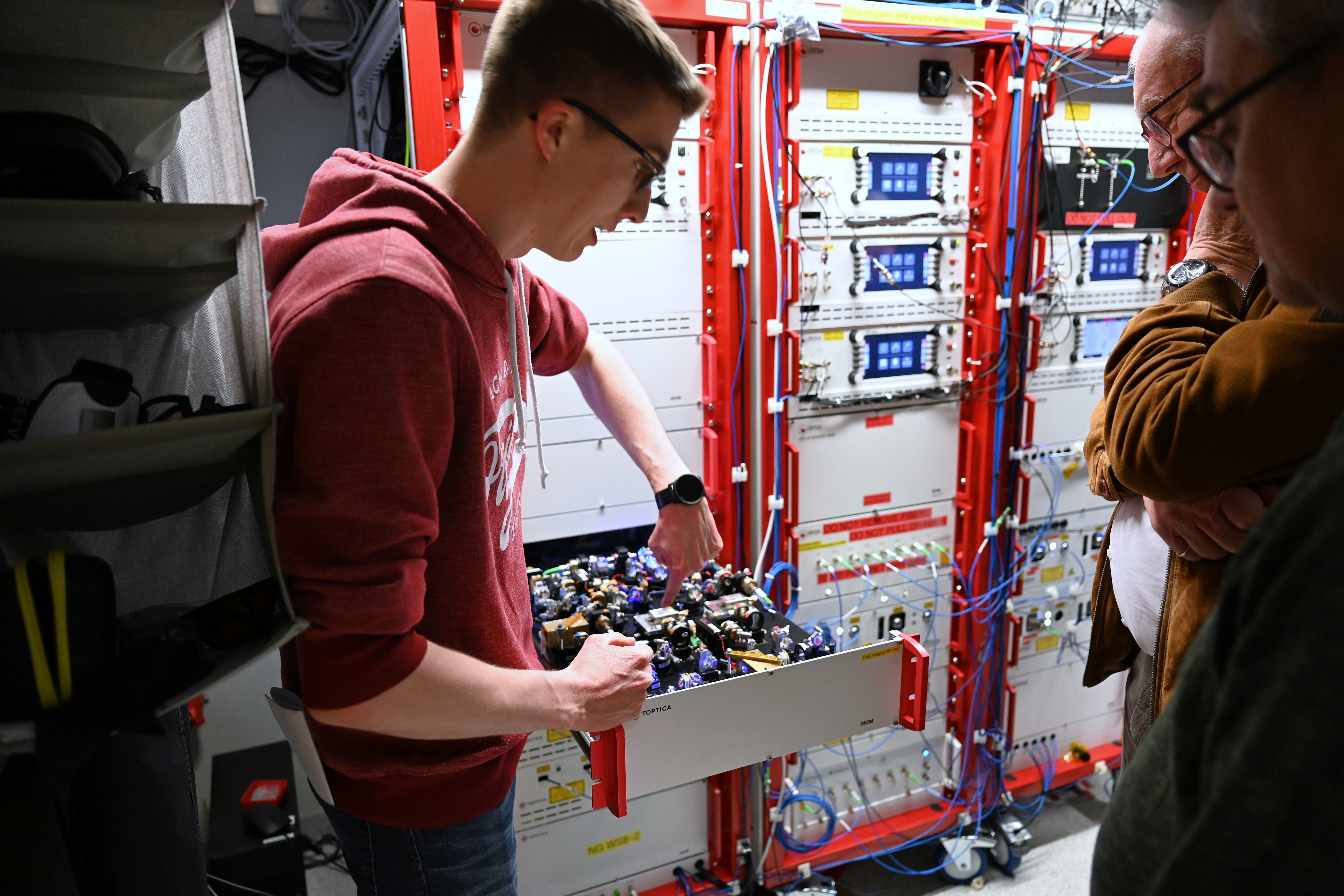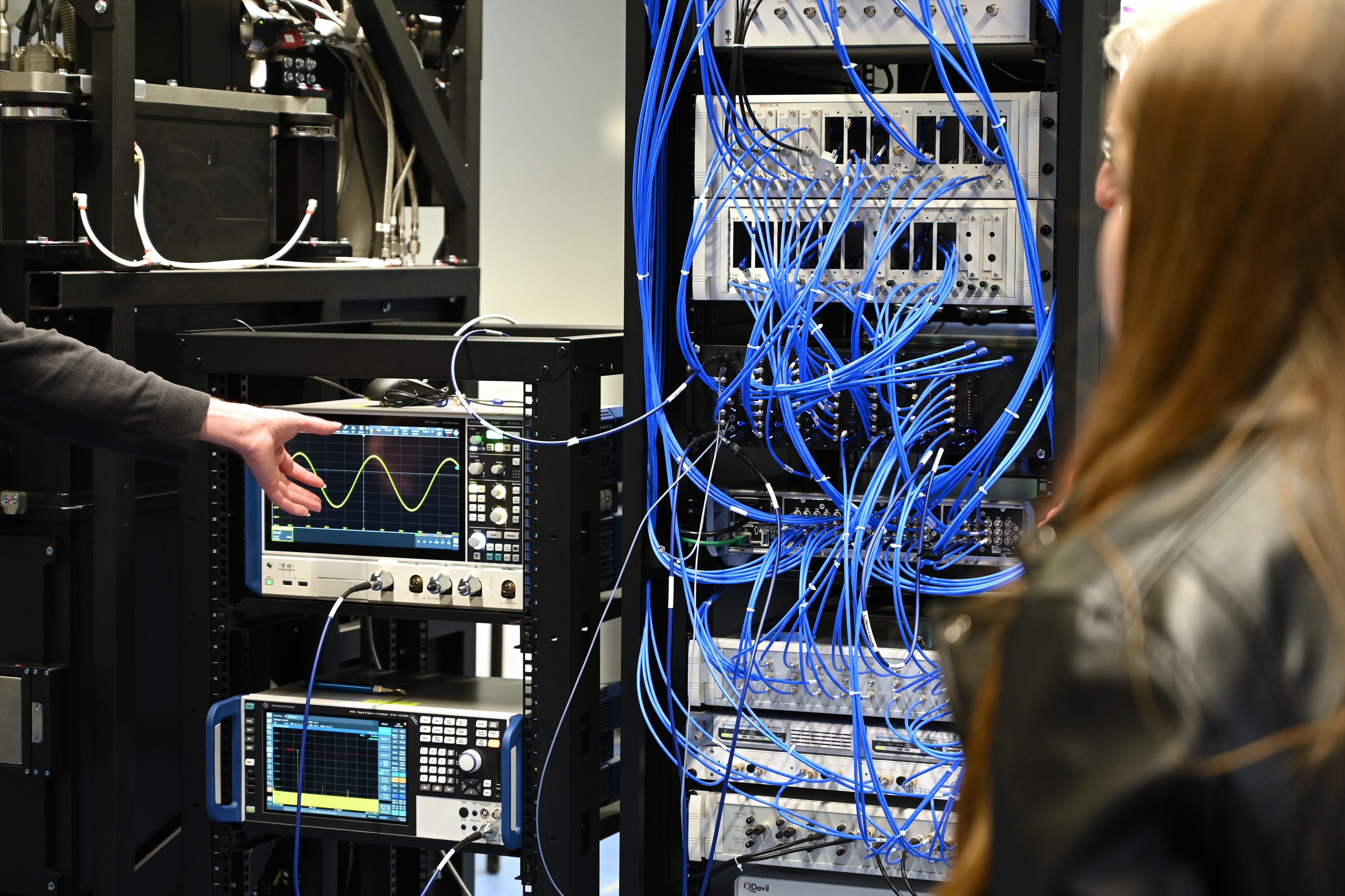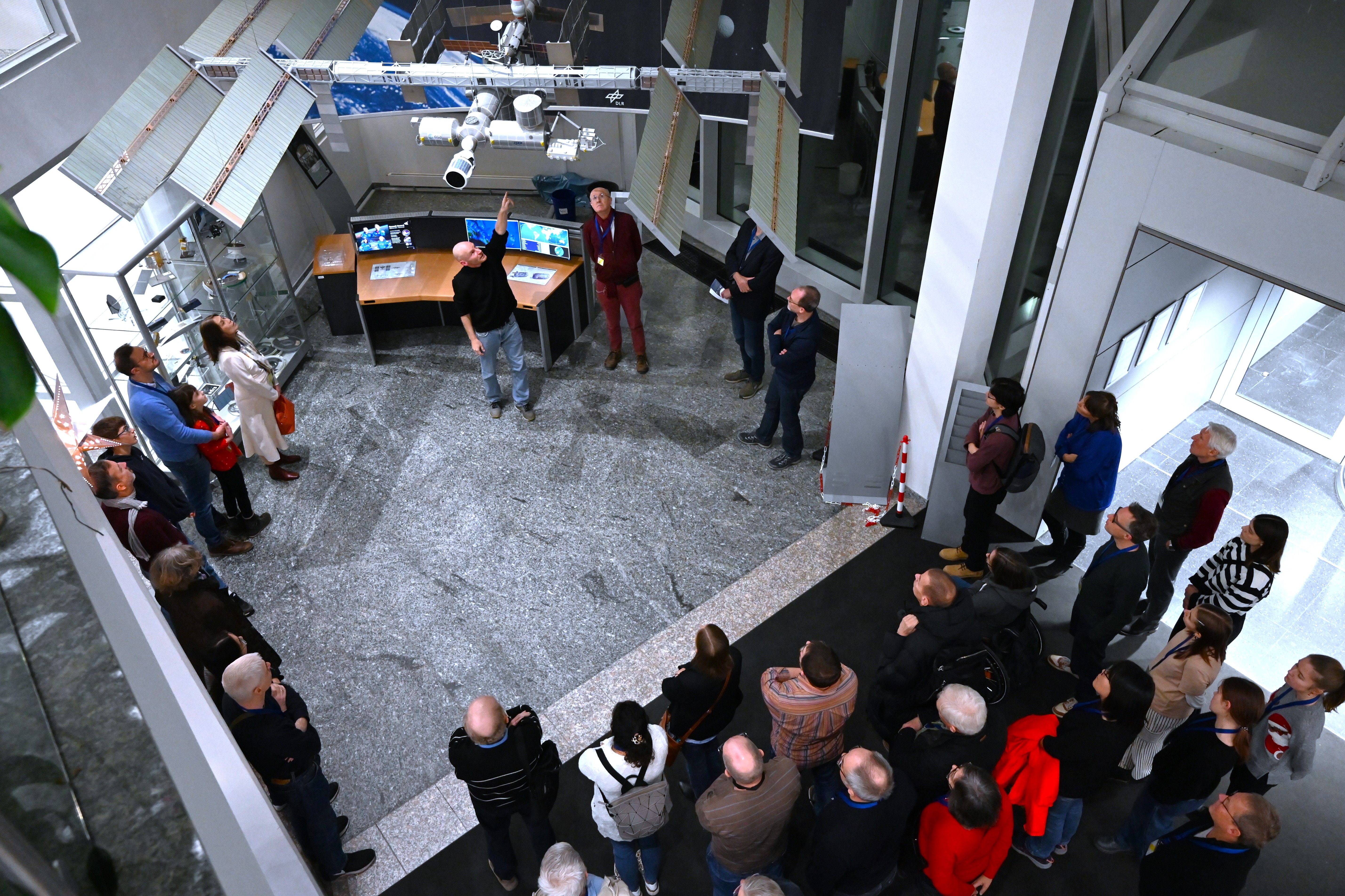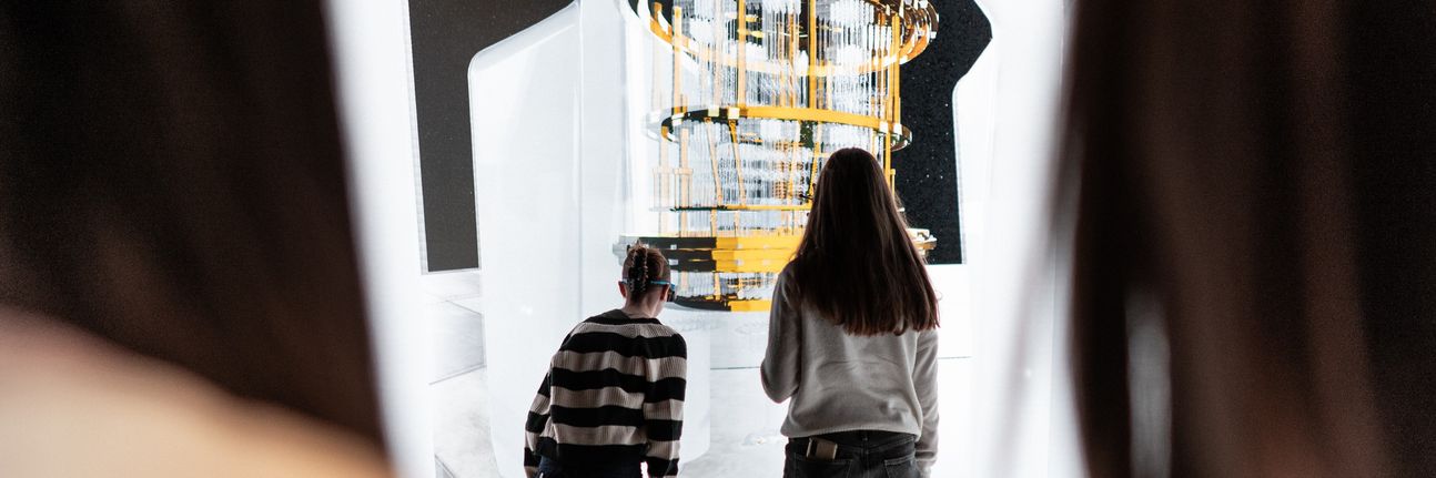 In the second half of the year, the MQV invited visitors to the new premises of the Max Planck Society's semiconductor laboratory. Its director, Jelena Nincovic, provided an insight into the development of high-precision semiconductor technologies and the work in the clean room, which is kept almost completely particle-free at great expense due to its high purity class and was therefore visited virtually by the guests. Prof. Jonathan Finley explained to visitors to the Walter Schottky Institute how researchers generate individual light particles at the touch of a button. Visitors were then able to experience firsthand how sensitive such experiments can be, as the increased room temperature caused by the presence of the guests prevented the experiment from being carried out—an authentic impression of everyday research. At the Fraunhofer Institute for Cognitive Systems, quantum computing is being researched on another level: here, visitors could learn more about the possible applications of quantum computers, get to know quantum algorithms, and even build small quantum circuits themselves using an application. It was back to hardware development at the event at the Walther Meissner Institute of the BAdW, where quantum systems at the lowest temperatures are being researched and where guests were particularly impressed by the sparkling gold cryostats required for superconducting quantum computing. Visitors were equally impressed by the huge machines and server racks at the Leibniz Supercomputing Centre, where, among other things, the integration of quantum computers into high-performance computing centers is being researched and tested. “You don't usually get to see something like this,” said one participant enthusiastically. At the end of the year, the German Space Operations Center of the German Aerospace Center in Oberpfaffenhofen opened its doors and allowed guests to gaze into the distance. Metaphorically, during a presentation on the potential use of quantum technologies in space travel, and quite literally on the screens in the control rooms, which broadcast live footage of astronauts working in the Columbus module of the International Space Station (ISS).