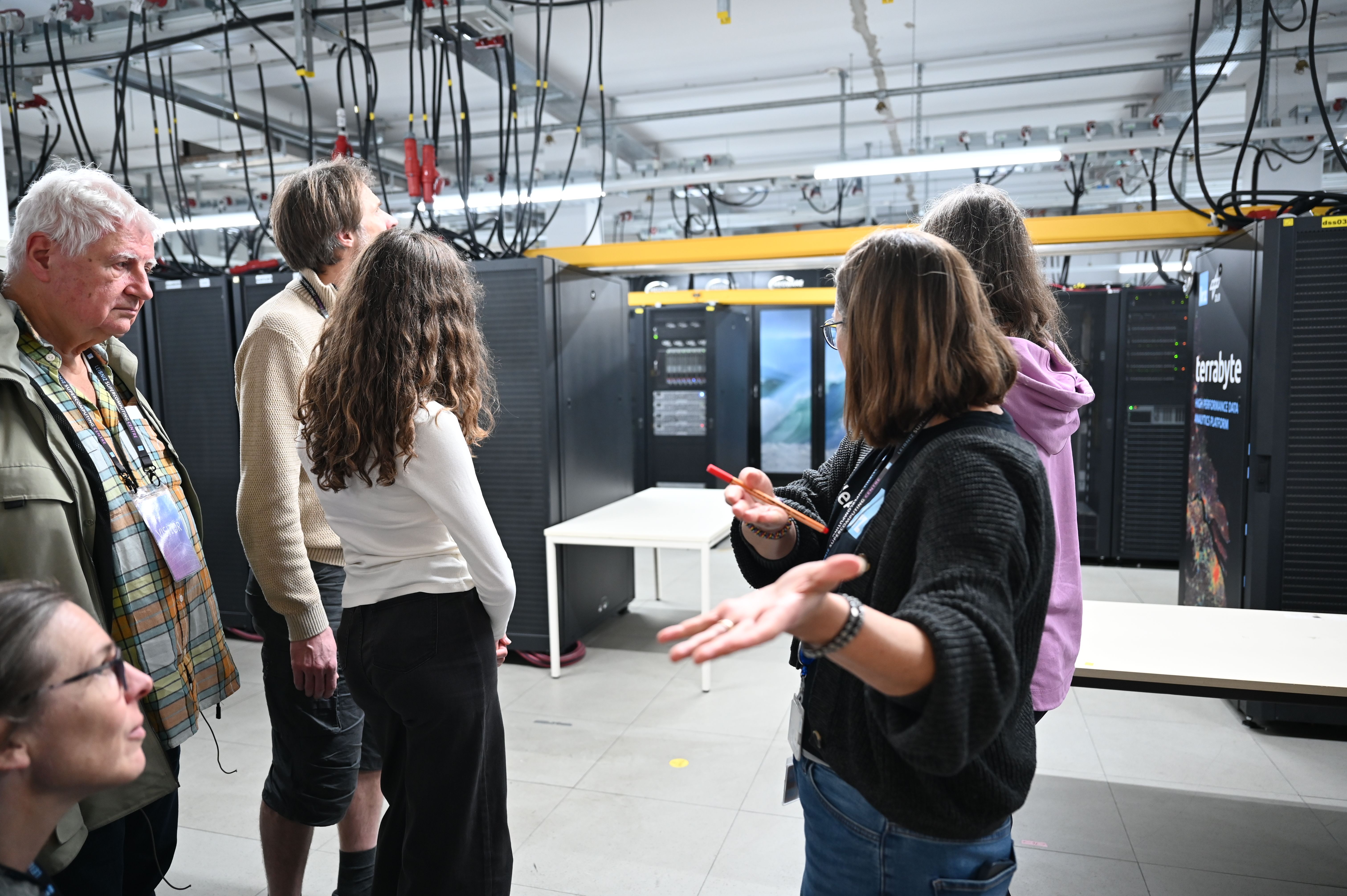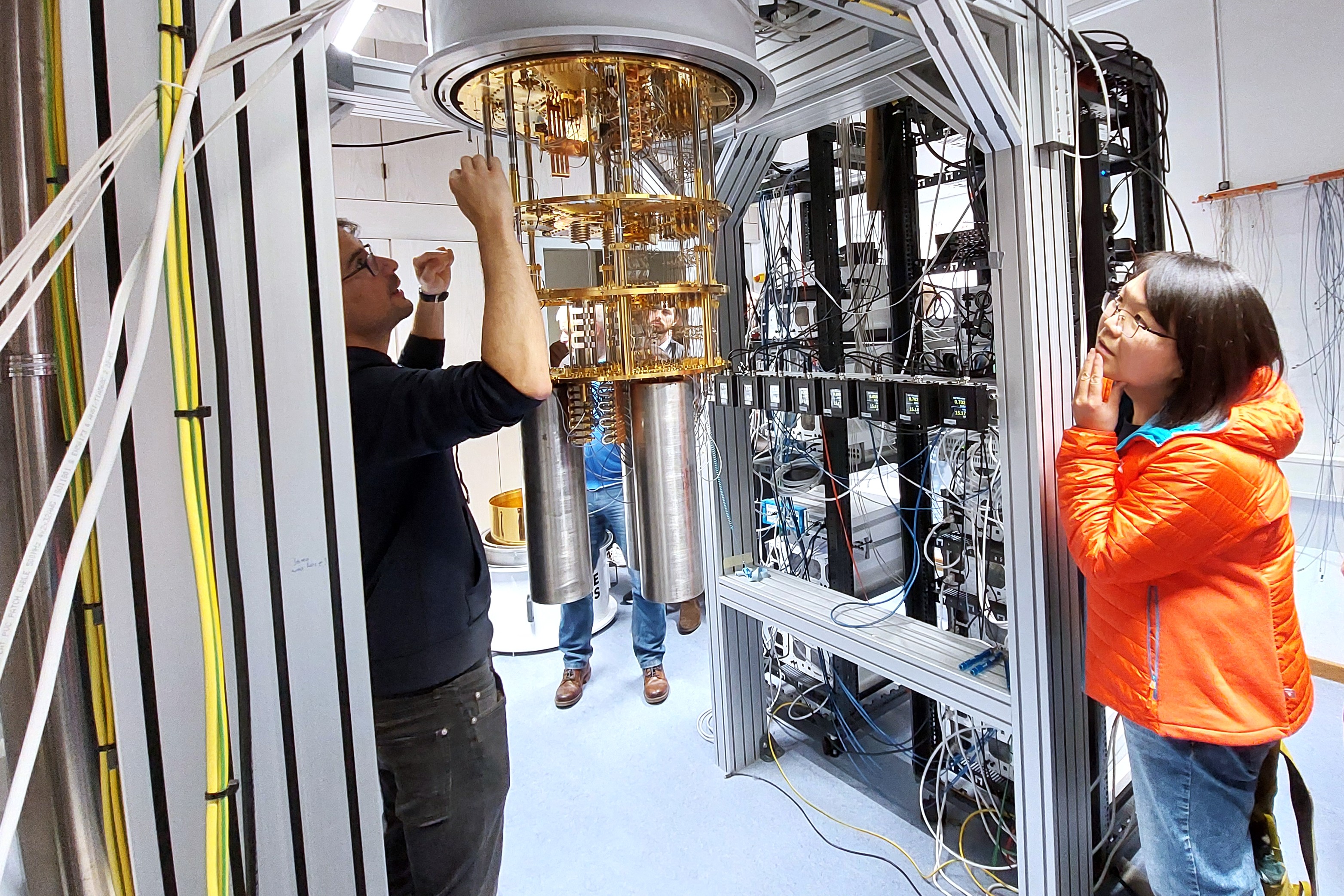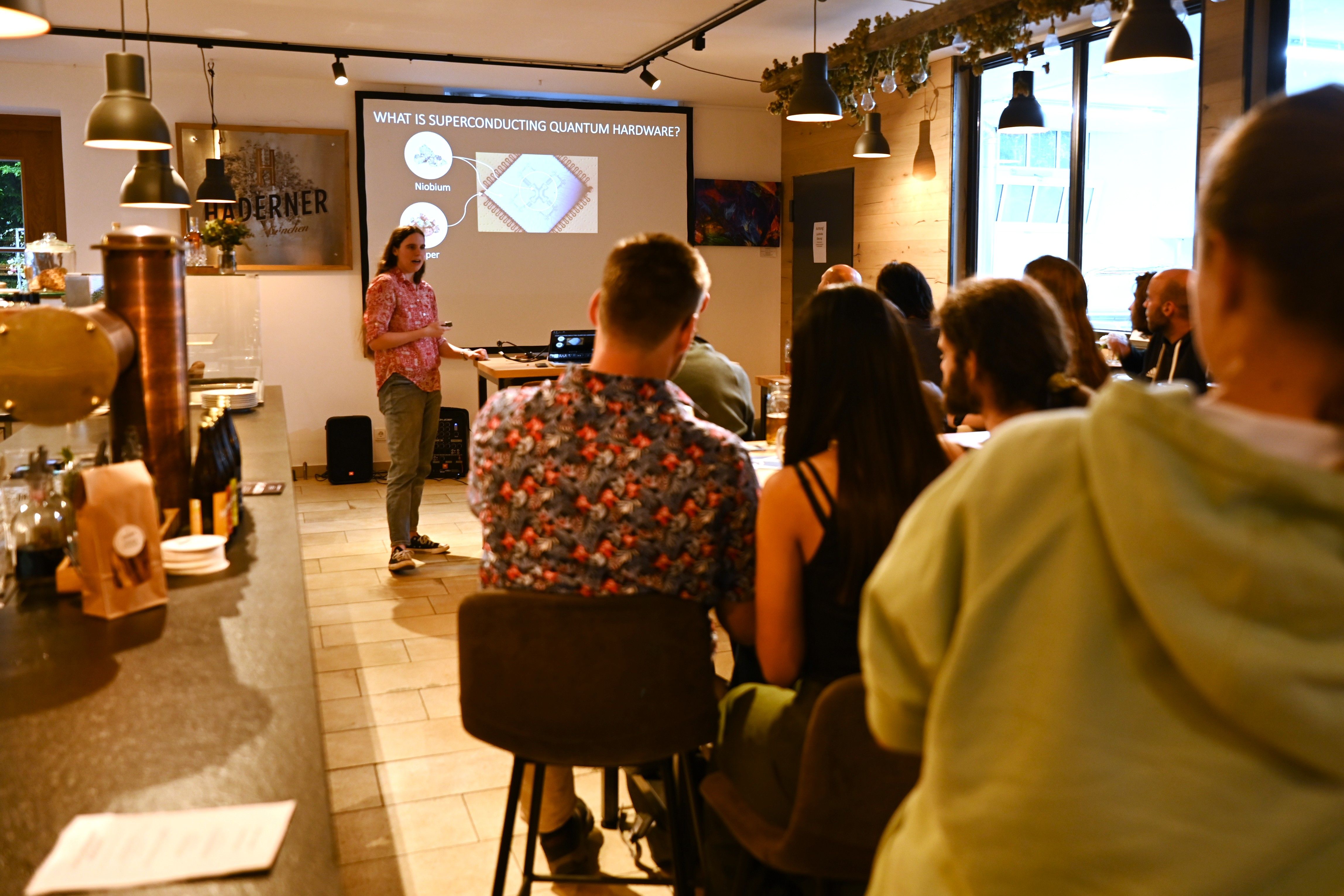 In the second half of the year, the MQV invited visitors to the new premises of the Max Planck Society's semiconductor laboratory. Its director, Jelena Nincovic, provided an insight into the development of high-precision semiconductor technologies and the work in the clean room, which is kept almost completely particle-free at great expense due to its high purity class and was therefore visited virtually by the guests. Prof. Jonathan Finley explained to visitors to the Walter Schottky Institute how researchers generate individual light particles at the touch of a button. Visitors were then able to experience firsthand how sensitive such experiments can be, as the increased room temperature caused by the presence of the guests prevented the experiment from being carried out—an authentic impression of everyday research. At the Fraunhofer Institute for Cognitive Systems, quantum computing is being researched on another level: here, visitors could learn more about the possible applications of quantum computers, get to know quantum algorithms, and even build small quantum circuits themselves using an application. It was back to hardware development at the event at the Walther Meissner Institute of the BAdW, where quantum systems at the lowest temperatures are being researched and where guests were particularly impressed by the sparkling gold cryostats required for superconducting quantum computing. Visitors were equally impressed by the huge machines and server racks at the Leibniz Supercomputing Centre, where, among other things, the integration of quantum computers into high-performance computing centers is being researched and tested. “You don't usually get to see something like this,” said one participant enthusiastically. At the end of the year, the German Space Operations Center of the German Aerospace Center in Oberpfaffenhofen opened its doors and allowed guests to gaze into the distance. Metaphorically, during a presentation on the potential use of quantum technologies in space travel, and quite literally on the screens in the control rooms, which broadcast live footage of astronauts working in the Columbus module of the International Space Station (ISS).