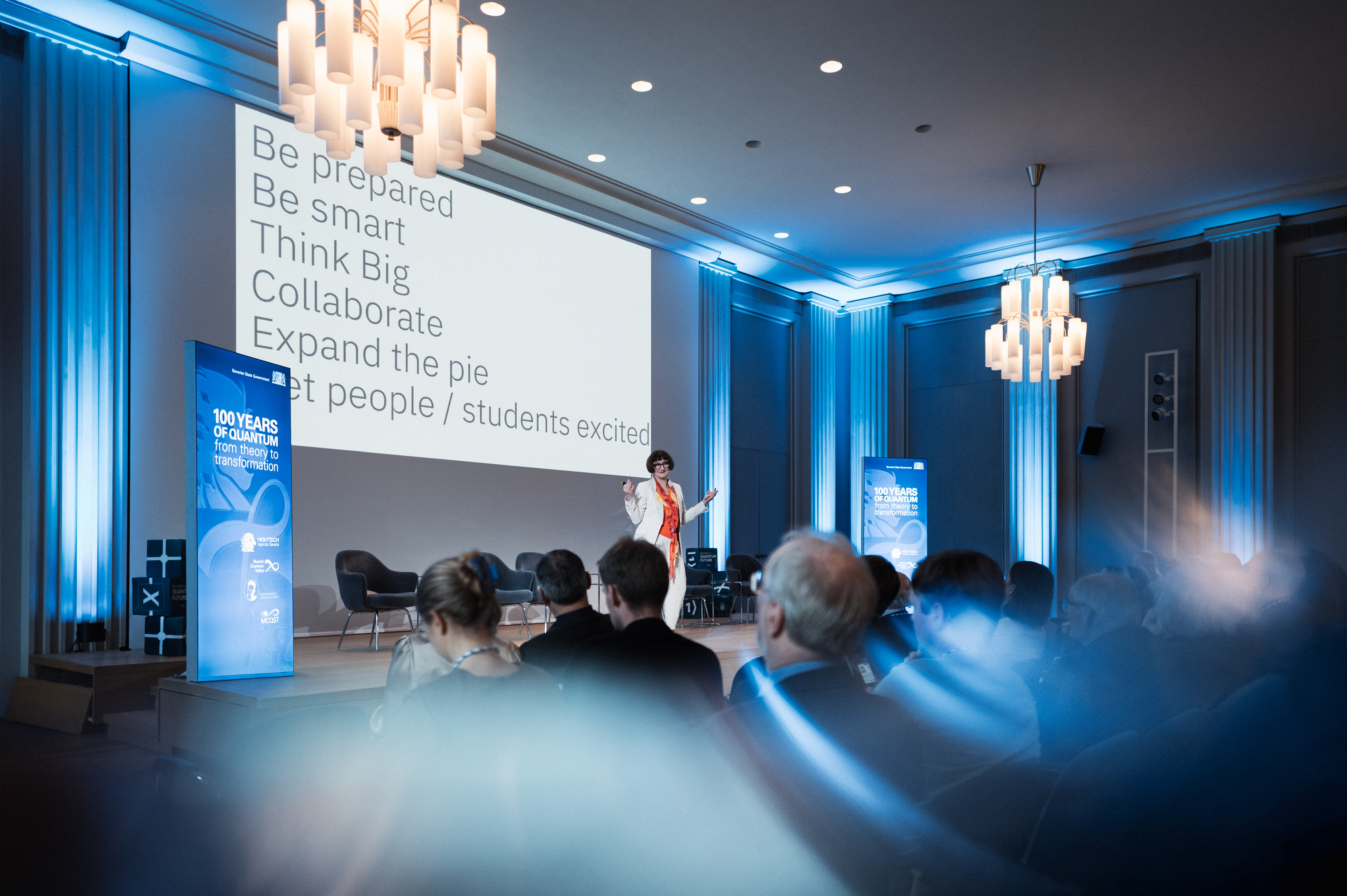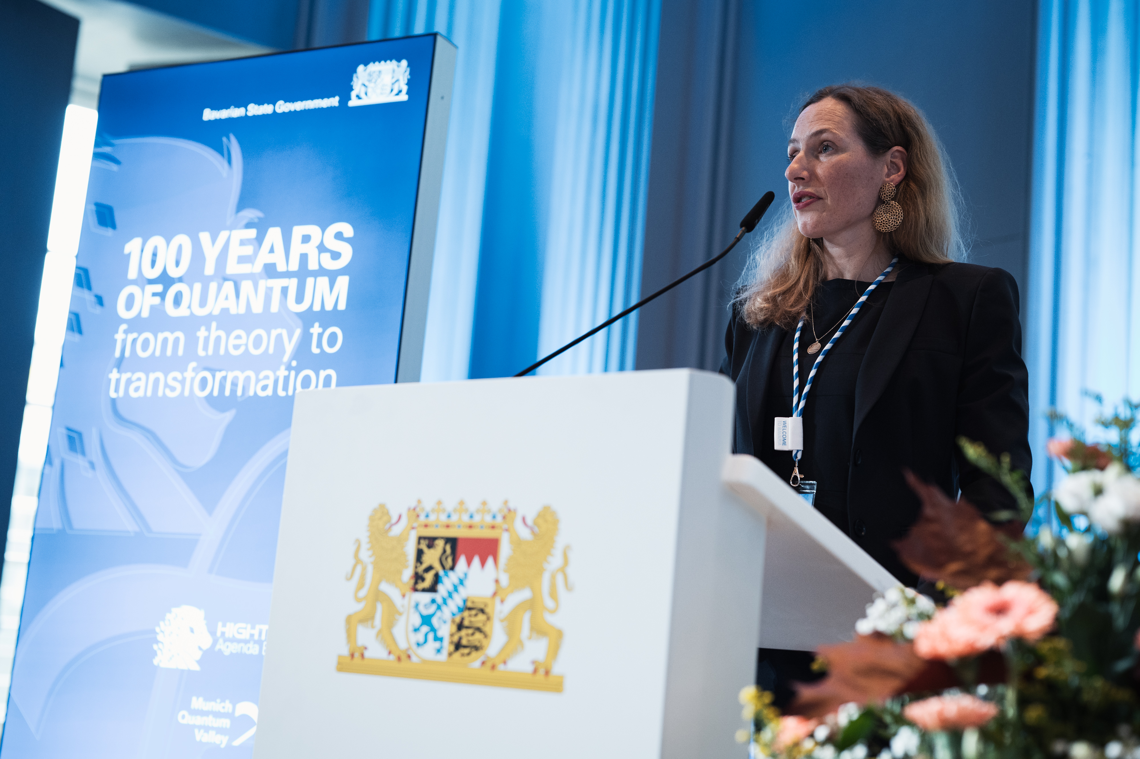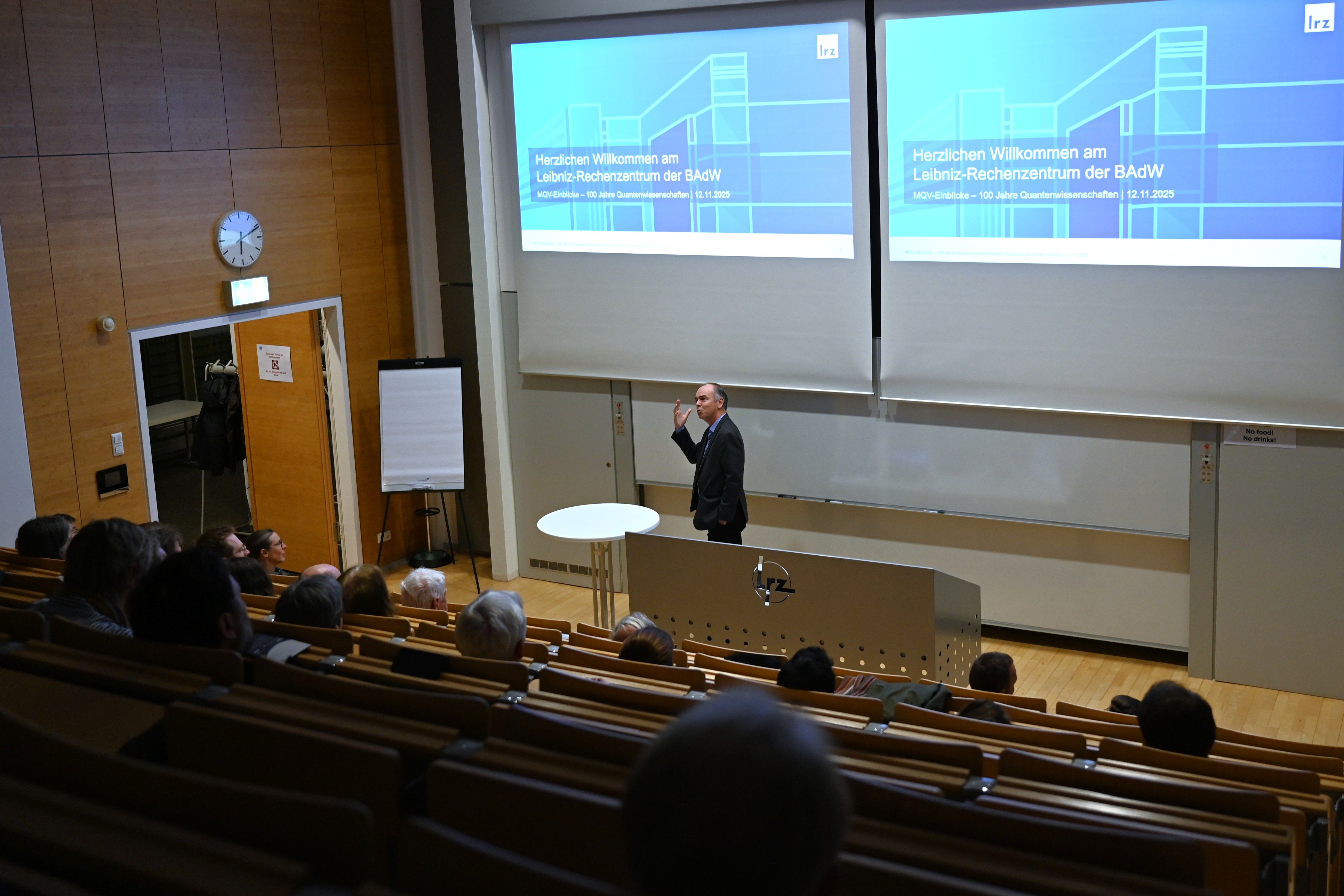 Blatt's lecture was also the first event in the series “MQV-Einblicke – 100 Jahre Quantenwissenschaften und woran wir heute forschen” (MQV Insights - 100 Years of Quantum Science and What We Are Researching Today), in which MQV invited guests to its member institutes throughout the quantum year to experience their current cutting-edge research on site. The evening events, most of which were completely booked out, offered guests the opportunity to learn about various aspects of quantum technology research and take a look behind the scenes and into the laboratories. At the Max Planck Institute of Quantum Optics, visitors had the rare opportunity to visit a quantum optics laboratory and see up close the complex experimental setups used to trap and control individual atoms. At Friedrich-Alexander University Erlangen-Nuremberg, Prof. Florian Marquardt and Prof. Christopher Eichler introduced guests to the world of superconducting quantum computers before they were given a tour of a laboratory where superconducting quantum processors are researched and where they could examine wafers and tiny chips with superconducting structures. Superconducting technologies were also the focus at the Fraunhofer Institute for Microsystems and Solid State Technologies, where Daniela Zahn took the audience on a journey into the tiny, ice-cold world of superconducting quantum computers and her colleagues presented a special innovation from the institute: flexible, foil-based, superconducting cables, which visitors were then able to see being manufactured. Crystals so thin that they can be described as two-dimensional were introduced to guests at the Chair of Experimental Solid State Physics at Ludwig-Maximilians-Universität München, where they could see for themselves how the novel quantum materials being researched at the chair are manufactured.