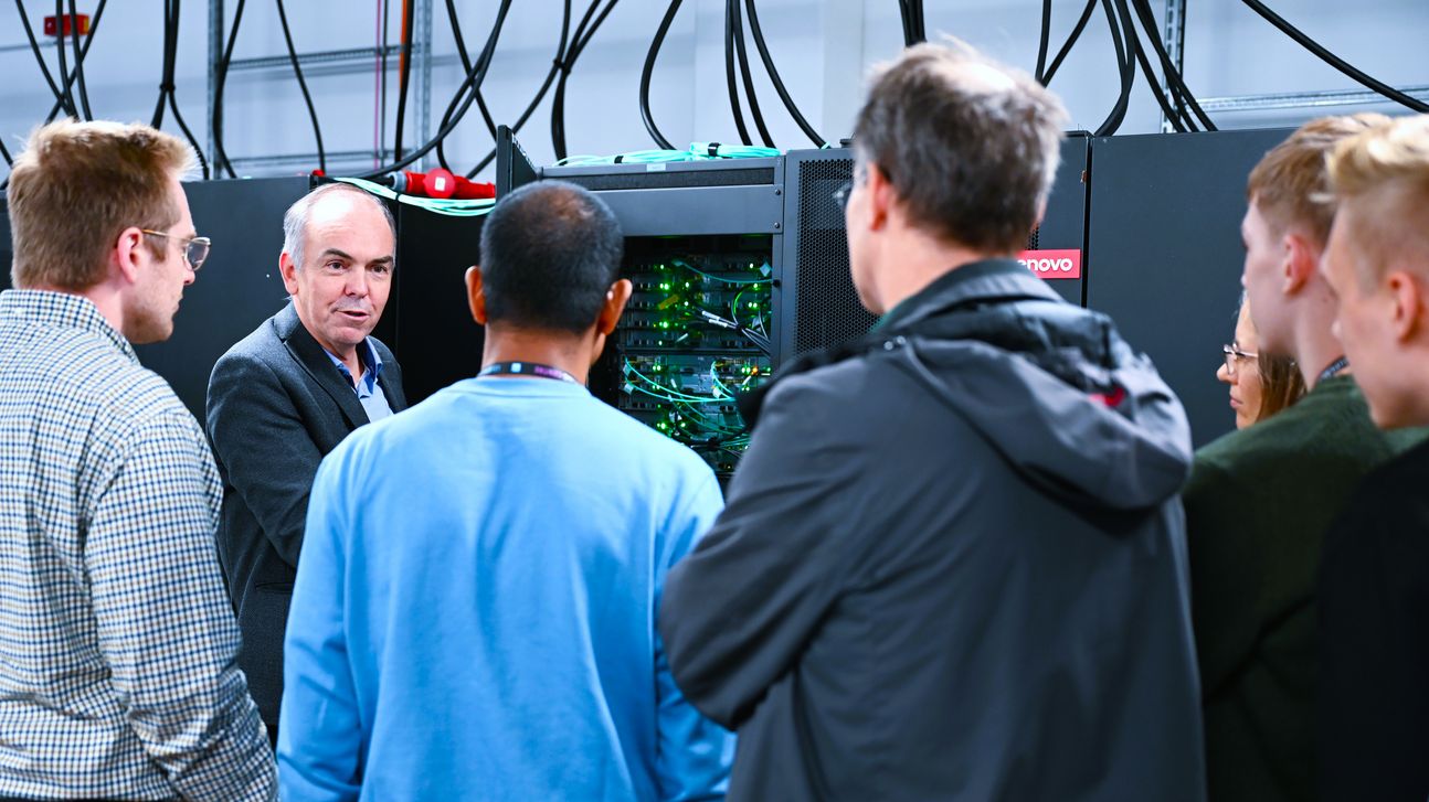 60 booked-out places and an equally long waiting list: On Wednesday evening, the LRZ was delighted to see such great public interest in taking a look behind the scenes of a high-performance computing center. To kick things off, Prof. Dieter Kranzlmüller, Director of the LRZ, presented the structure, areas of responsibility, and research fields of the computing center. The audience was already impressed by the explanations of the building's architecture, the cooling of the computers, and the power consumption—the annual electricity costs of an average household are roughly equivalent to those of the LRZ's hourly operation. And the impressive story continued with the heart—or rather the brain—of the LRZ, the computers: the machines operated here are among the most powerful in Europe. They are used to research the formation of stars from gas clouds or to simulate blood flow in the smallest arteries in the brain.